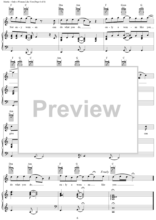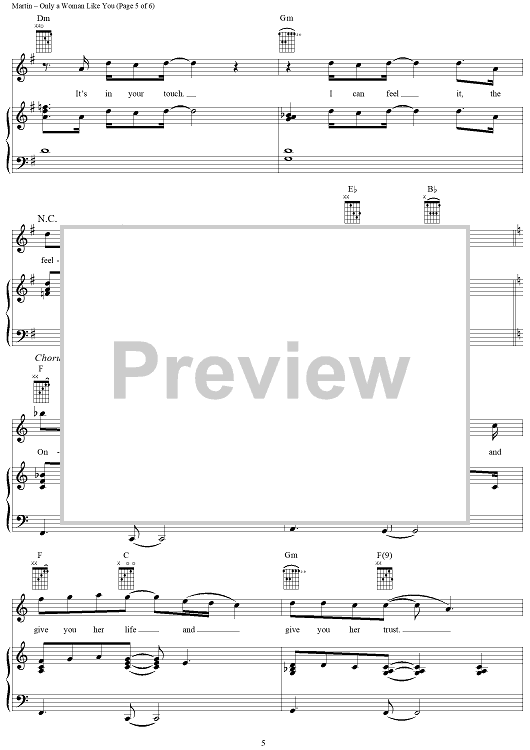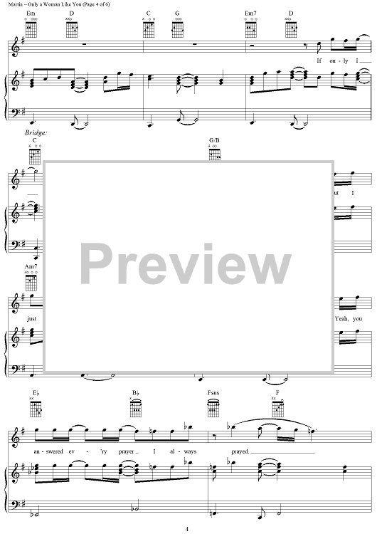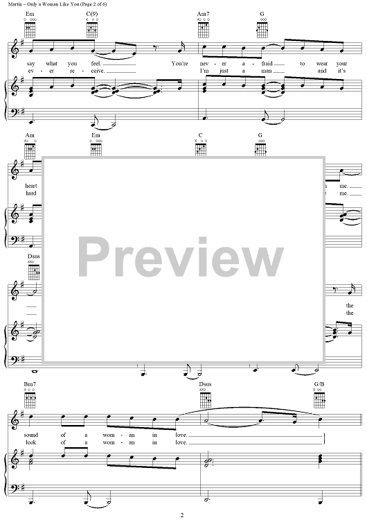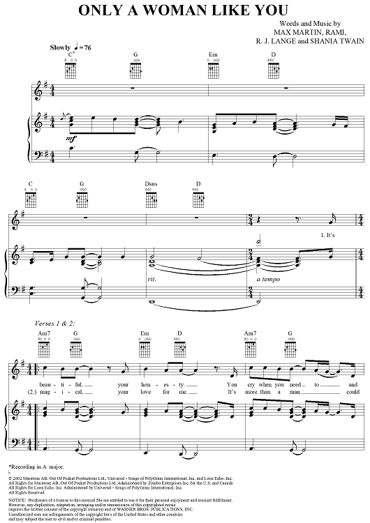 Digital Sheet Music for Only a Woman Like You by Michael Bolton, Shania Twain, Max Martin, Robert Lange, Rami Yacoub scored for Piano/Vocal/Chords; id:289617