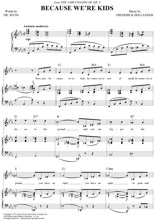 Digital Sheet Music for Because We're Kids - High Voice by Dr. Seuss, Frederick Hollander scored for Piano/Vocal/Chords; id:466033