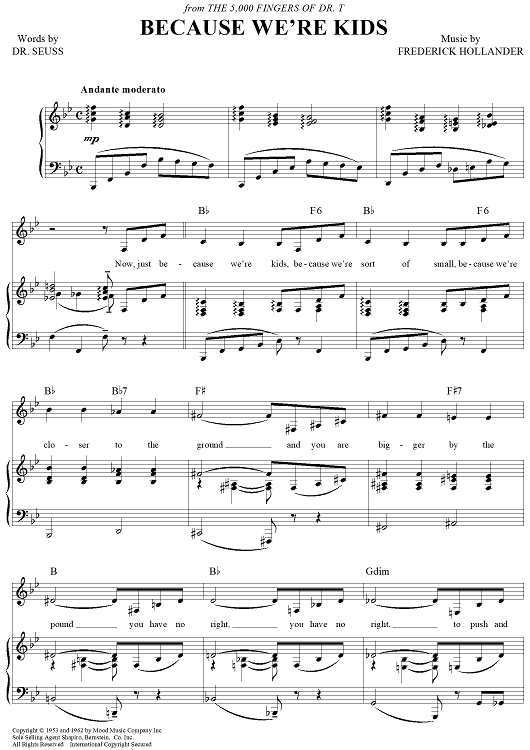 Digital Sheet Music for Because We're Kids - Low Voice by Dr. Seuss, Frederick Hollander scored for Piano/Vocal/Chords; id:466032