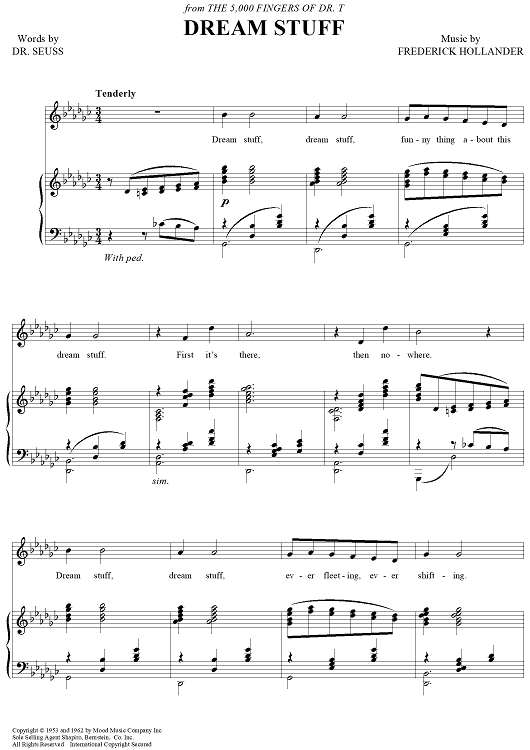 Digital Sheet Music for Dream Stuff (from The 5,000 Fingers of Dr. T) by Dr. Seuss, Frederick Hollander scored for Piano/Vocal/Chords; id:466167