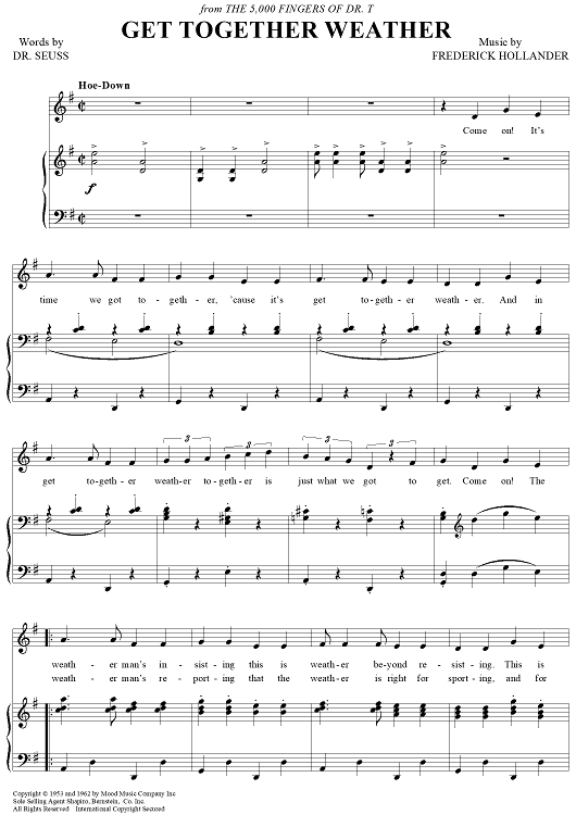 Digital Sheet Music for Get Together Weather (from The 5,000 Fingers of Dr. T) by Dr. Seuss, Frederick Hollander scored for Piano/Vocal/Chords; id:466609