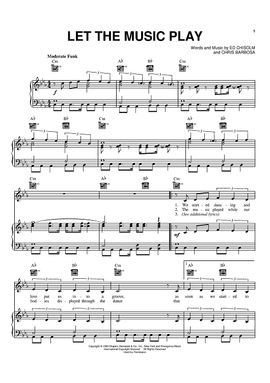 Digital Sheet Music for Let The Music Play by Ed Chisholm, Chris Barbosa, Shannon scored for Piano/Vocal/Chords; id:469031