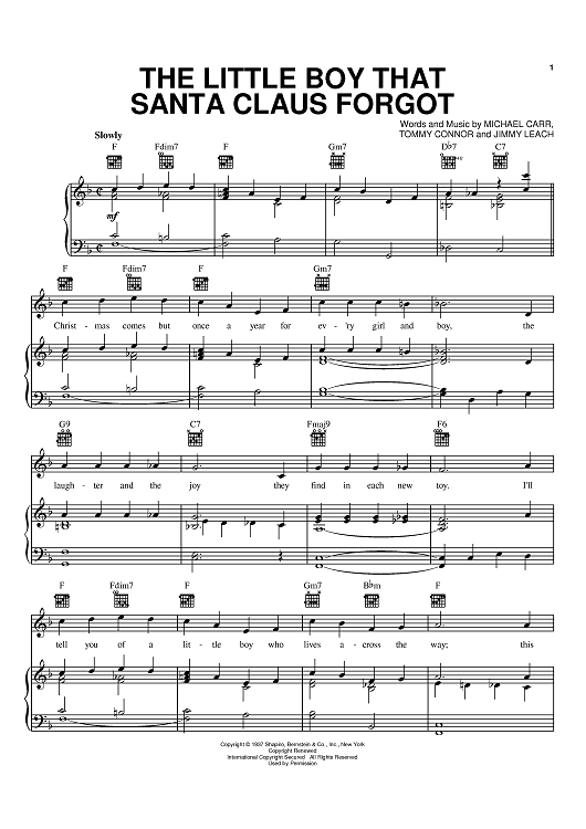 Digital Sheet Music for The Little Boy that Santa Claus Forgot by Michael Carr, Tommie Connor, Vera Lynn, Jimmy Leach scored for Piano/Vocal/Chords; id:469035