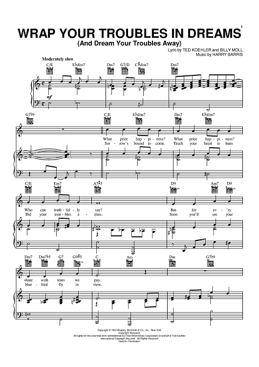 Digital Sheet Music for Wrap Your Troubles In Dreams (And Dream Your Troubles Away) by Ted Koehler, Harry Barris, Billy Moll scored for Piano/Vocal/Chords; id:469028