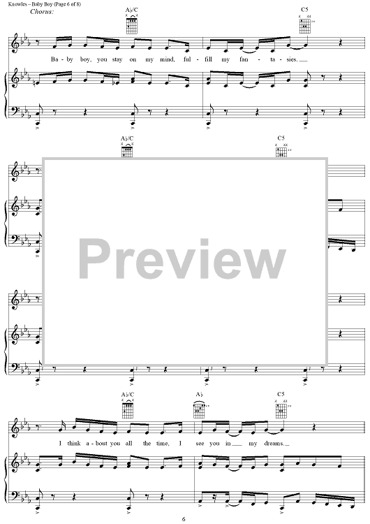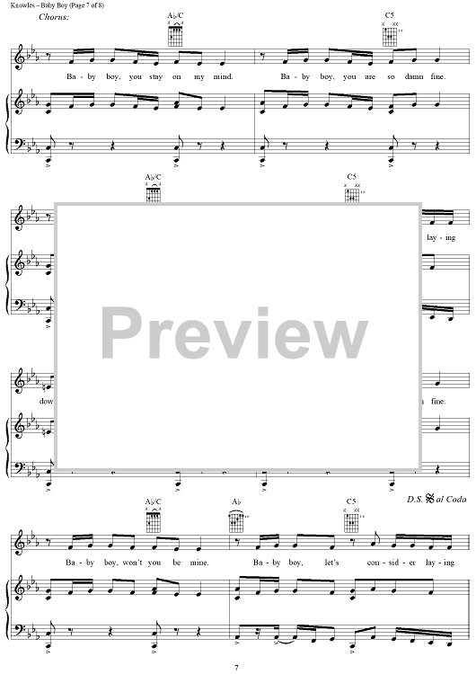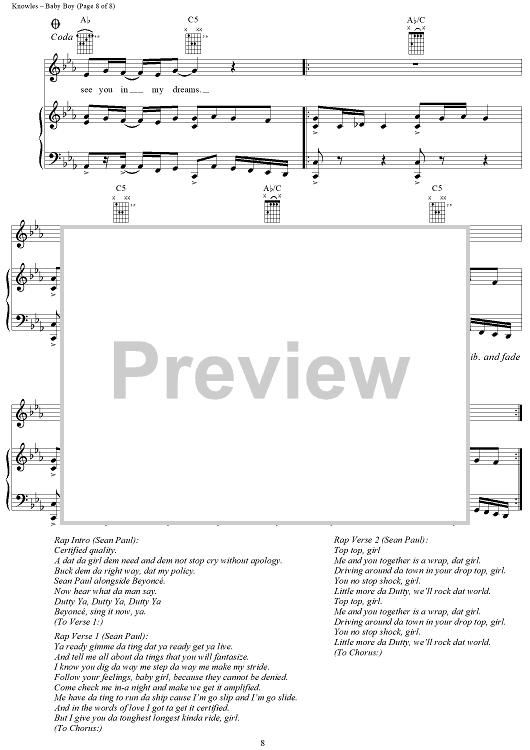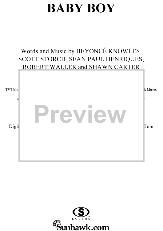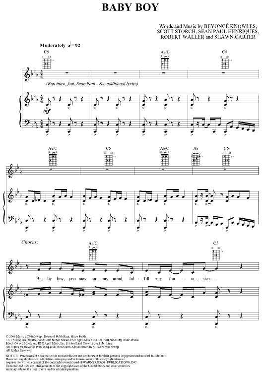 Digital Sheet Music for Baby Boy by Robert Waller, Beyonce, Scott Storch, Sean Paul, Shawn Carter, Sean Paul Henriques scored for Piano/Vocal/Chords; id:303099