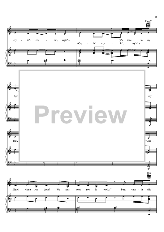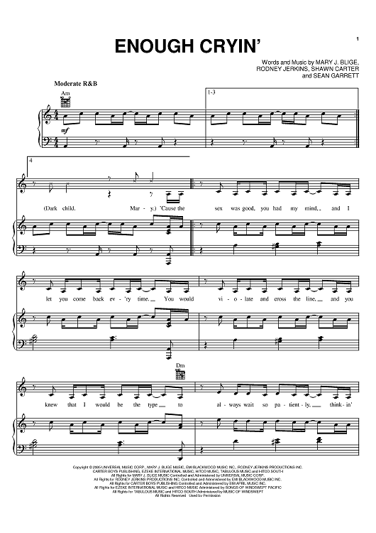 Digital Sheet Music for Enough Cryin' by Mary J. Blige, Rodney Jerkins, Shawn Carter, Sean Garrett scored for Piano/Vocal/Chords; id:390614