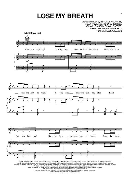 Digital Sheet Music for Lose My Breath by Rodney Jerkins, Destiny's Child, Beyonce, LaShawn Daniels, Fred Jerkins III, Kelly Rowland, Shawn Carter, Sean Garrett, Michelle Williams scored for Piano/Vocal/Chords; id:383854