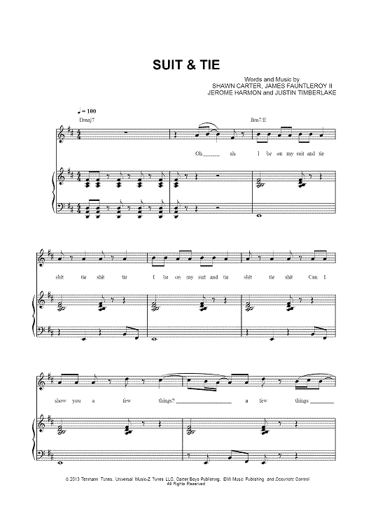 Digital Sheet Music for Suit & Tie by Shawn Carter, Jerome Harmon, James Fauntleroy II, Justin Timberlake scored for Piano/Vocal/Chords; id:433891