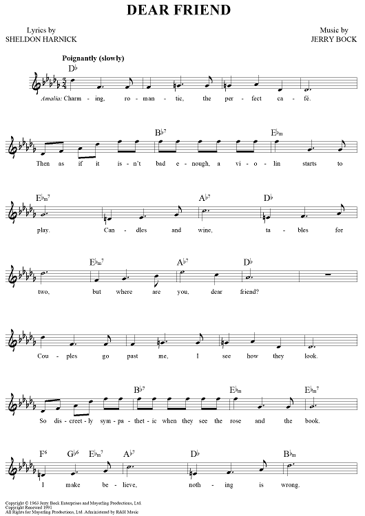 Digital Sheet Music for Dear Friend by Jerry Bock, Sheldon Harnick scored for Lead Sheet; id:457119