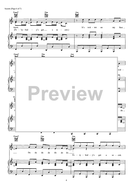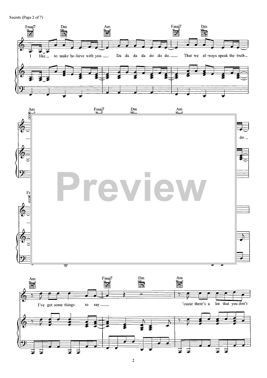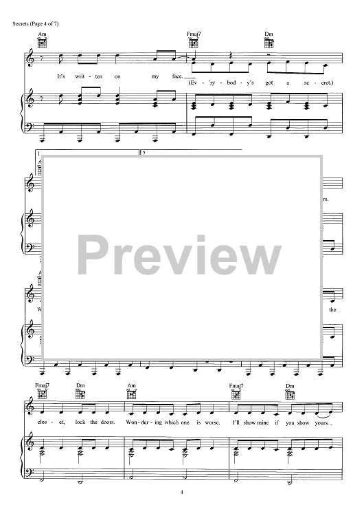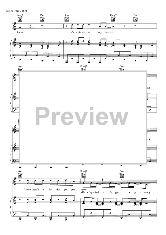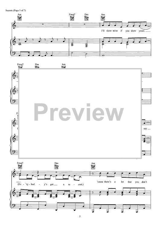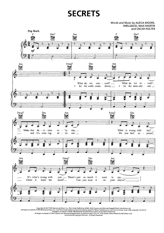 Digital Sheet Music for Secrets by Max Martin, Alicia B. Moore, Pink, Shellback, Oscar Holter scored for Piano/Vocal/Chords; id:466269
