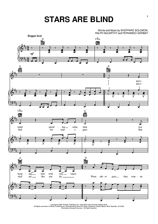 Digital Sheet Music for Stars Are Blind by Sheppard Solomon, Fernando Garibay, Paris Hilton, Ralph McCarthy scored for Piano/Vocal/Chords; id:391440