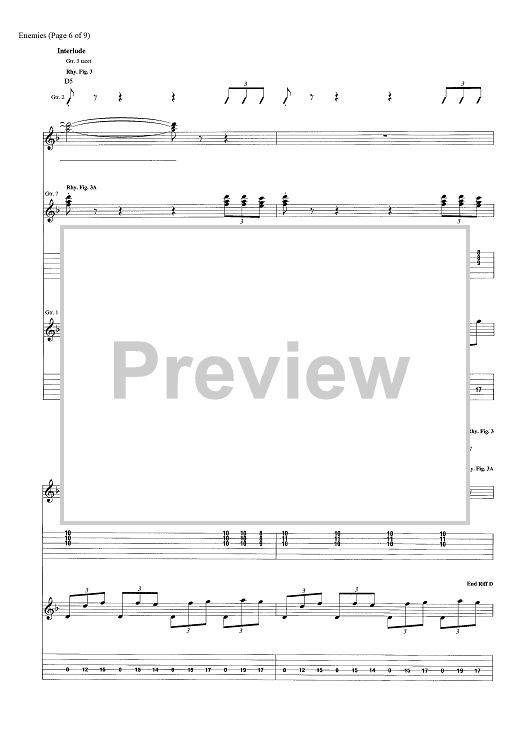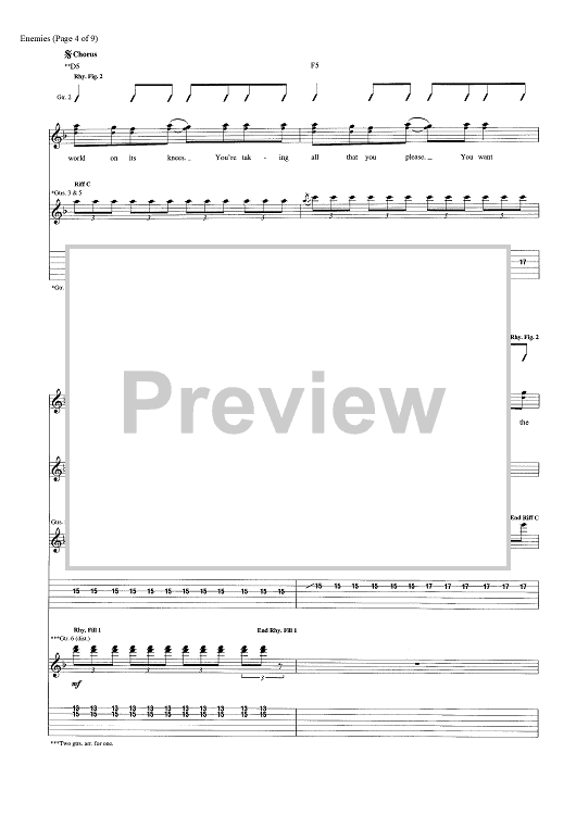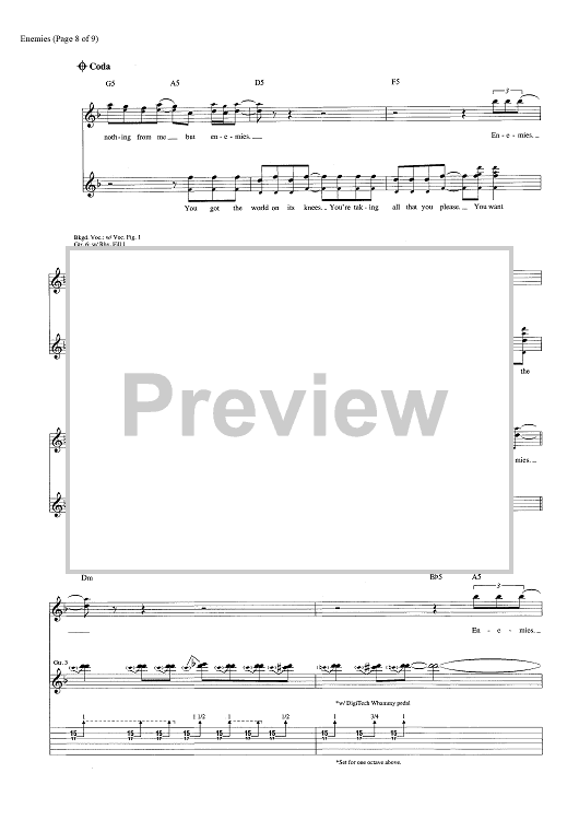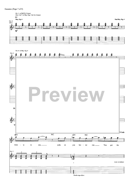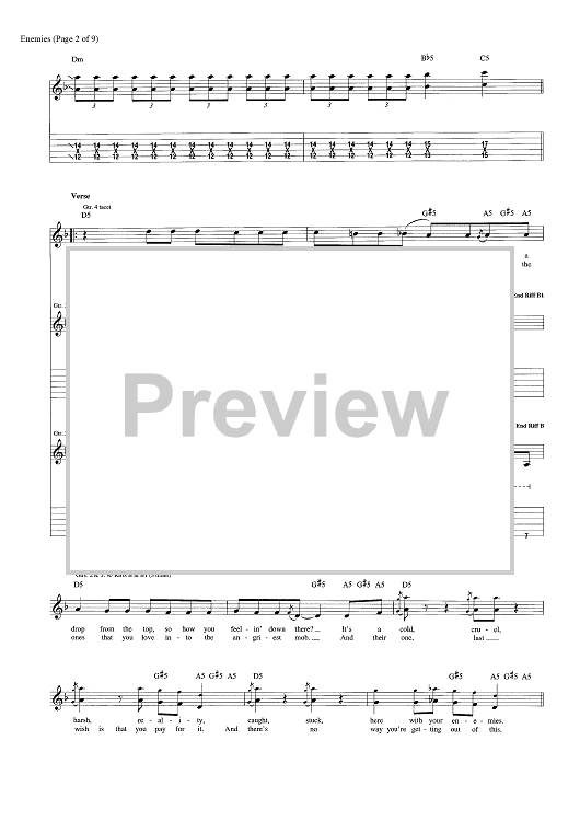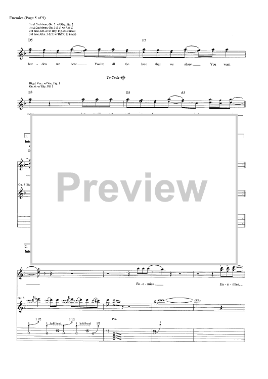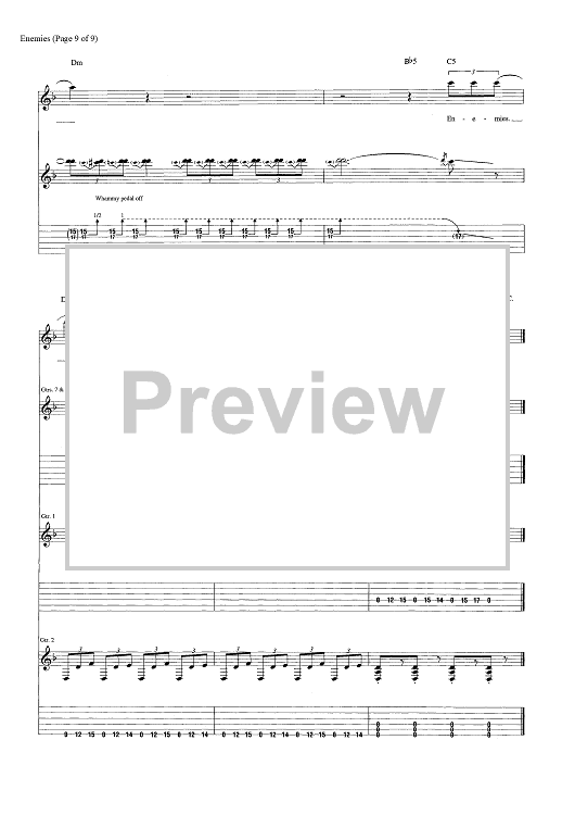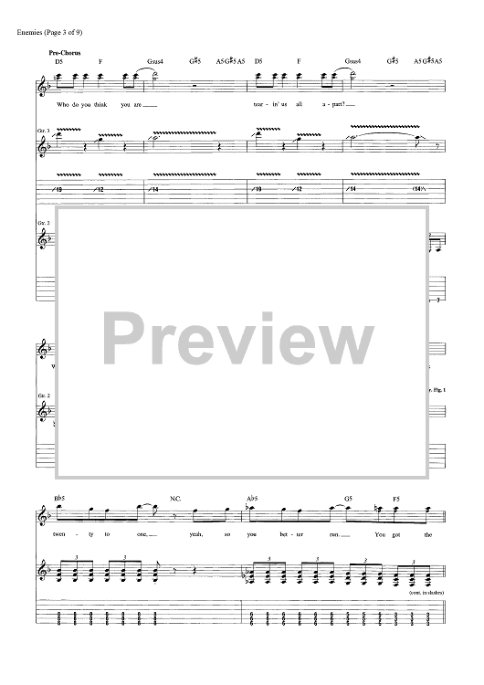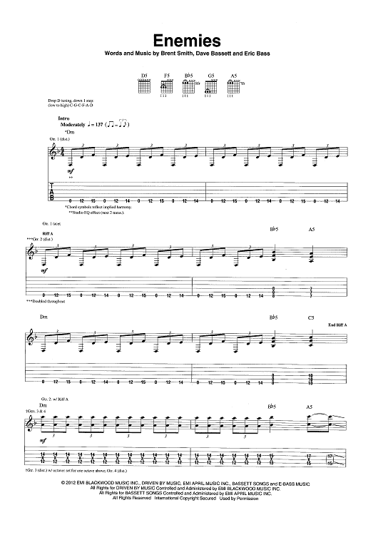 Digital Sheet Music for Enemies by Dave Bassett, Shinedown, Brent Smith, Eric Bass scored for Guitar Tab; id:463848