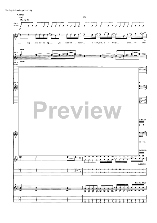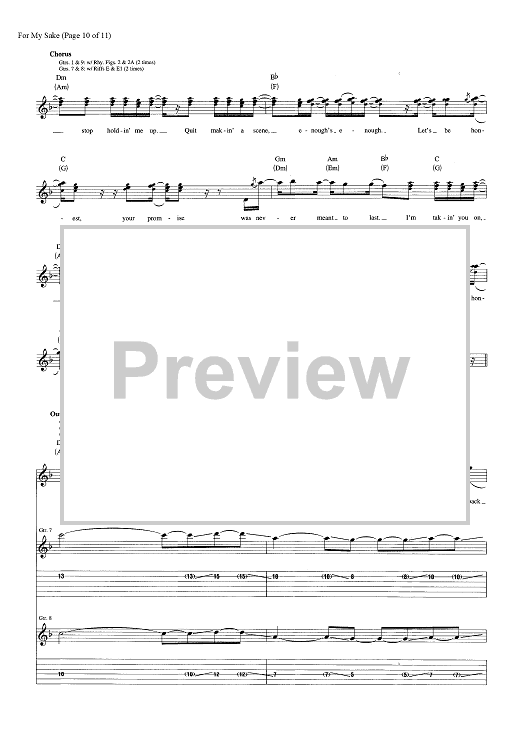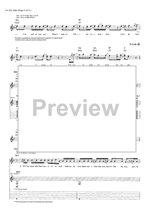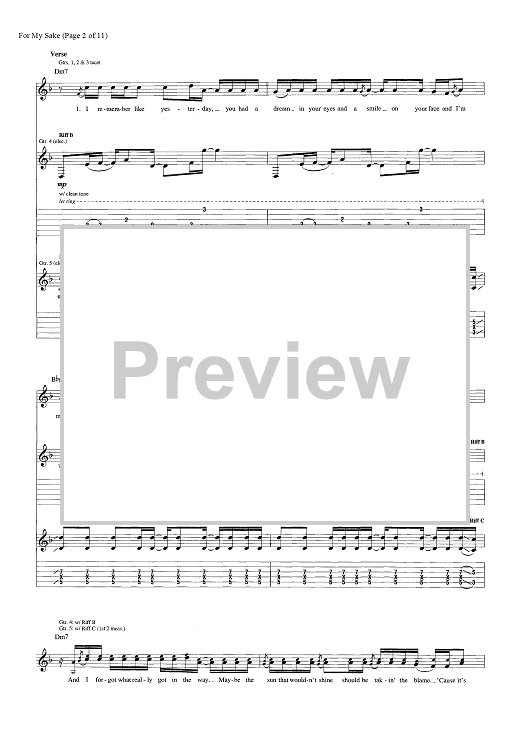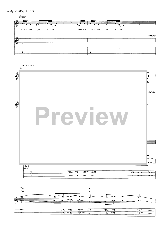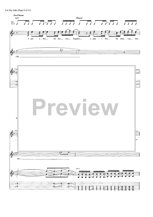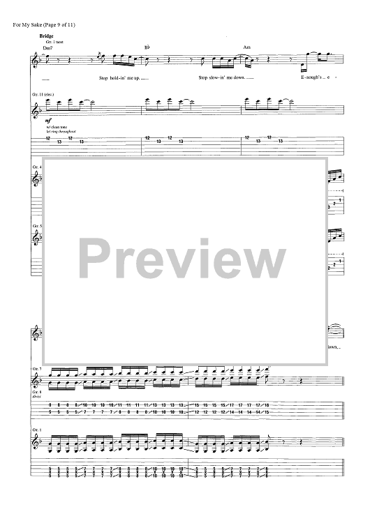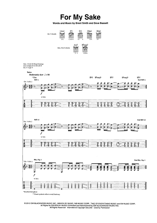 Digital Sheet Music for For My Sake by Dave Bassett, Shinedown, Brent Smith scored for Guitar Tab; id:463880