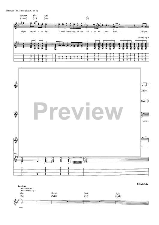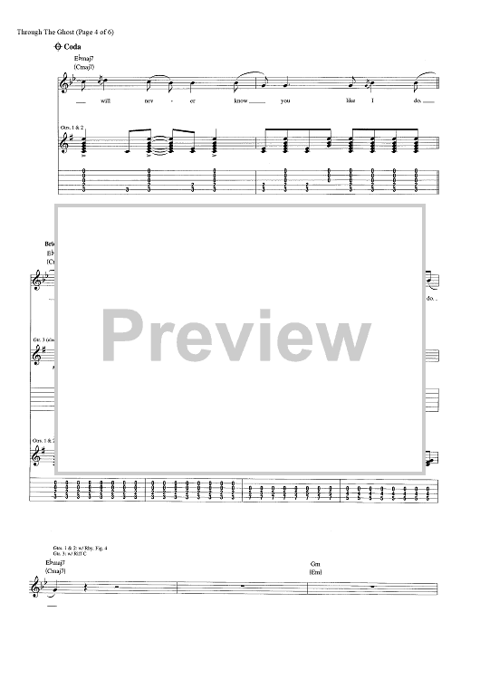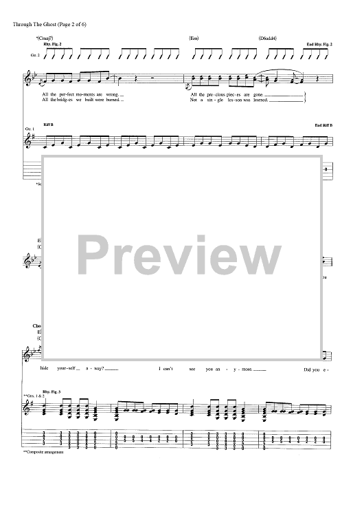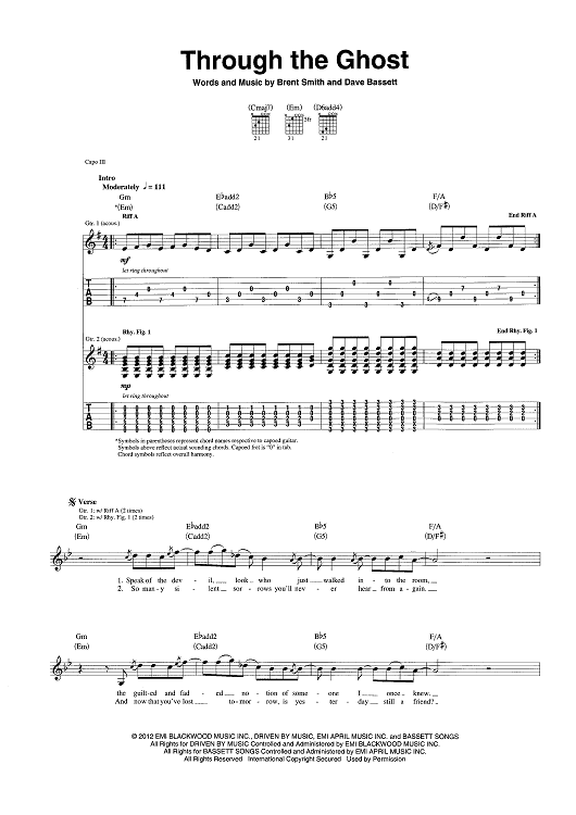 Digital Sheet Music for Through the Ghost by Dave Bassett, Shinedown, Brent Smith scored for Guitar Tab; id:463893