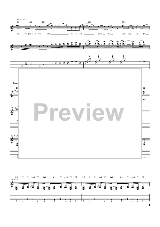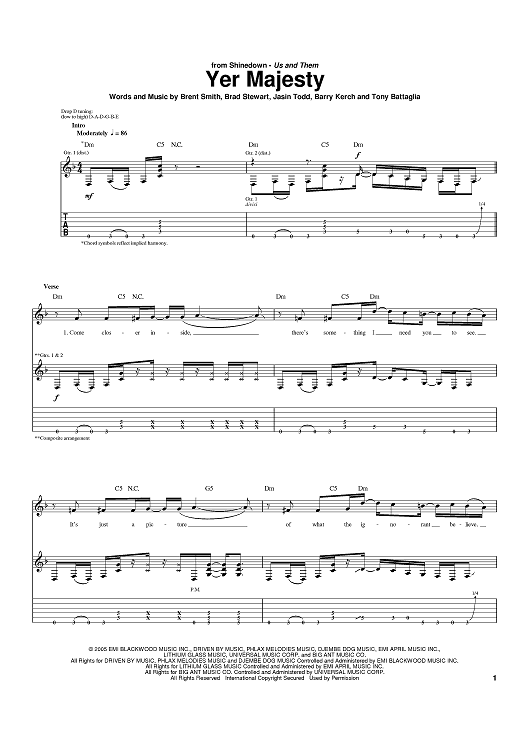 Digital Sheet Music for Yer Majesty by Brad Stewart, Tony Battaglia, Barry Kerch, Shinedown, Brent Smith, Jasin Todd scored for Guitar Tab; id:392360