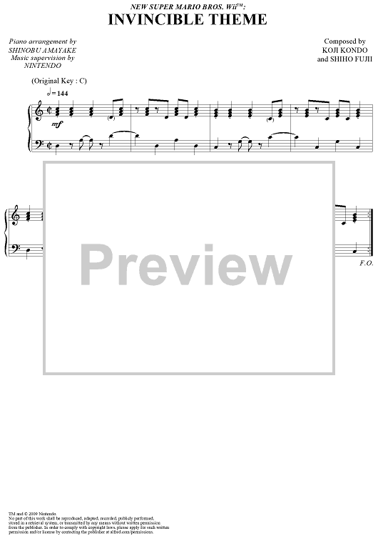 "New Super Mario Bros. Wii™: Invincible Theme" Sheet Music by Koji Kondo