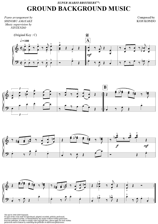 Digital Sheet Music for Super Mario Brothers™: Ground Background Music by Koji Kondo, Shinobu Amayake scored for Piano Solo; id:445101