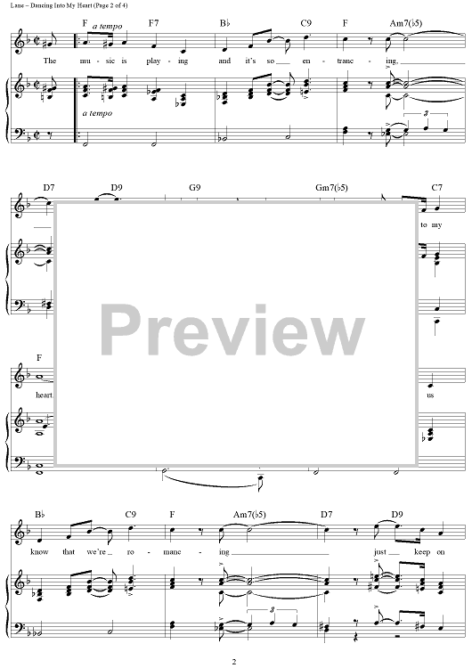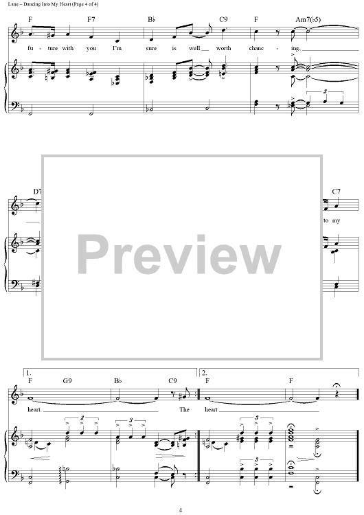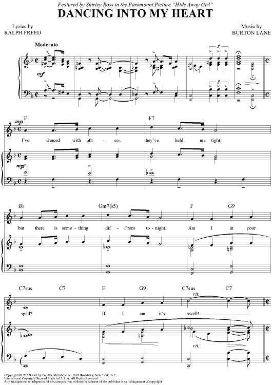Digital Sheet Music for Dancing Into My Heart by Burton Lane, Ralph Freed, Shirley Ross scored for Piano/Vocal/Chords; id:427347