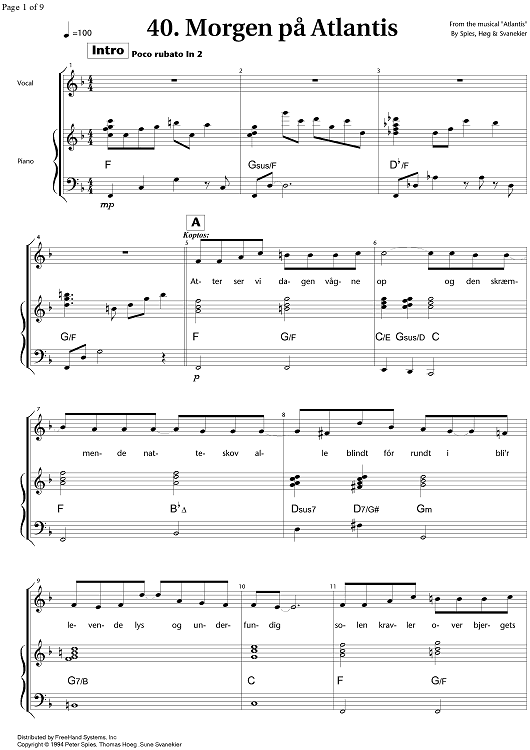 Digital Sheet Music for Atlantis - 40. Morgen paa Atlantis by , Thomas Hoeg, Peter Spies, Sune Svanekier scored for Voice/Piano; id:344143