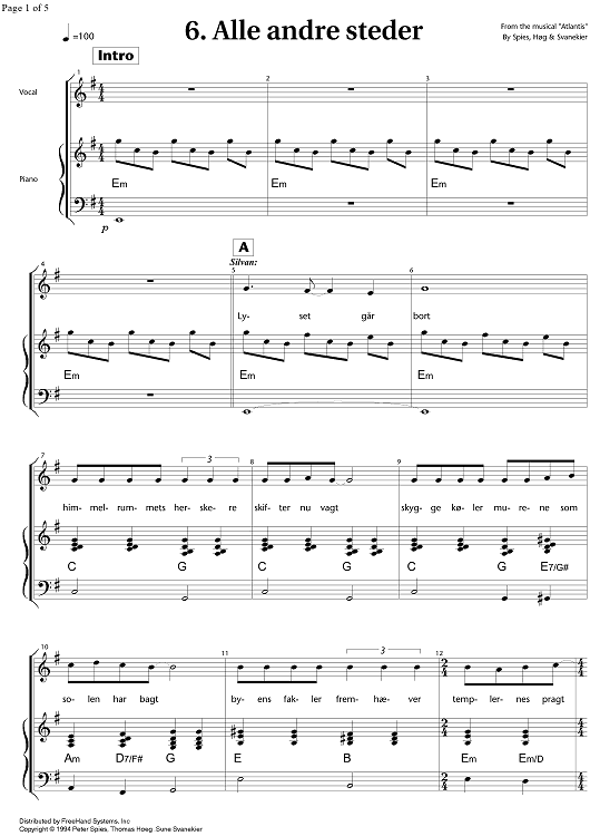 Digital Sheet Music for Atlantis - 6. Alle andre steder by , Thomas Hoeg, Peter Spies, Sune Svanekier scored for Voice/Piano; id:344109