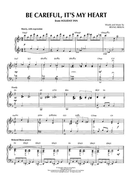 Digital Sheet Music for Be Careful, It's My Heart by George Gershwin, Brent Edstrom scored for Piano Solo; id:466001