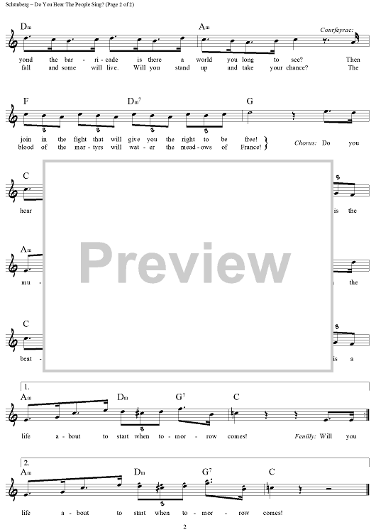 Digital Sheet Music for Do You Hear the People Sing? by Claude-Michel Schonberg, Herbert Kretzmer, Alain Boublil, Jean-Marc Natel scored for Lead Sheet; id:451942
