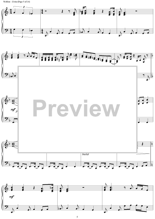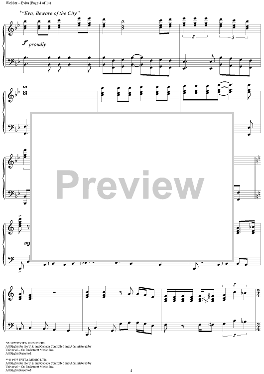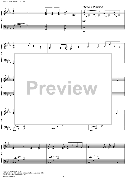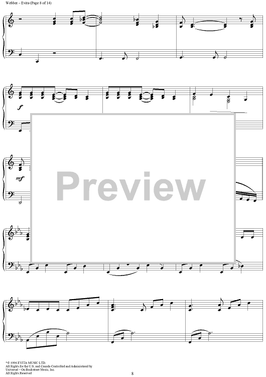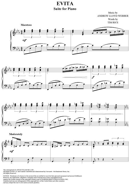 Digital Sheet Music for Evita: A Suite for Piano by Andrew Lloyd Webber, Tim Rice, Tony Esposito scored for Piano Solo; id:250360
