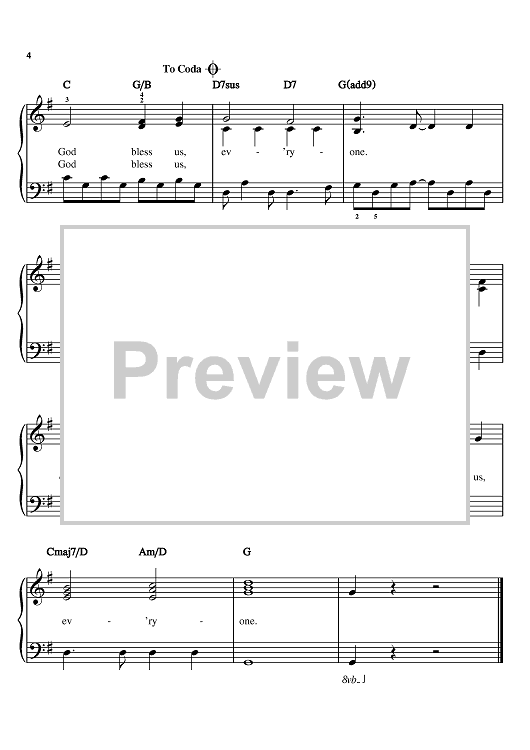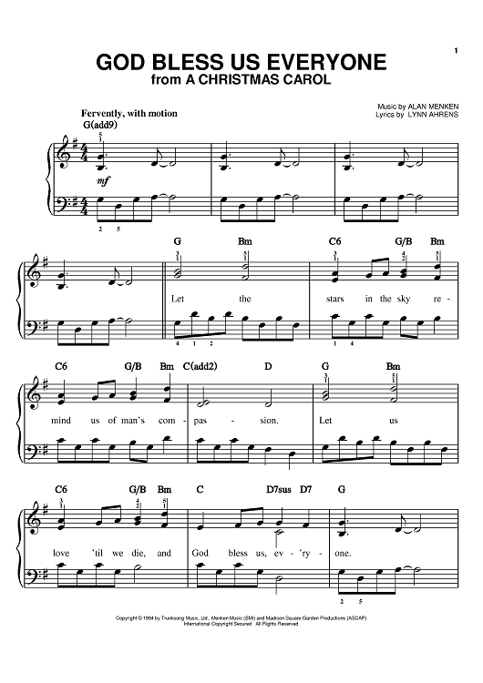 Digital Sheet Music for God Bless Us Everyone by Lynn Ahrens, Alan Menken scored for Easy Piano; id:372224