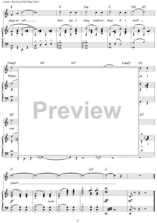 Digital Sheet Music for How Can I Wait? by Frederick Loewe, Alan Jay Lerner scored for Piano/Vocal/Chords; id:314333