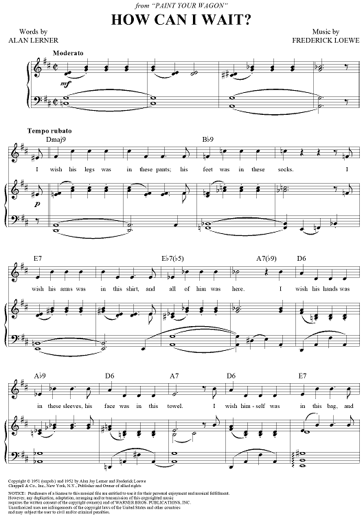 "How Can I Wait?" Sheet Music by Frederick Loewe