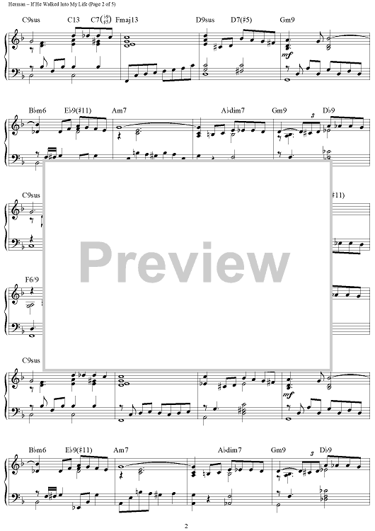 Digital Sheet Music for If He Walked Into My Life by Jerry Herman scored for Piano Solo; id:465624