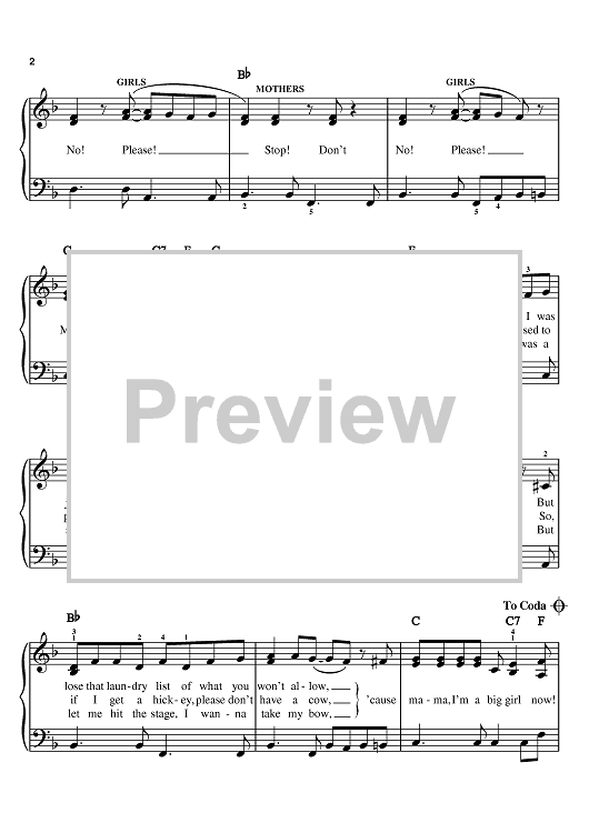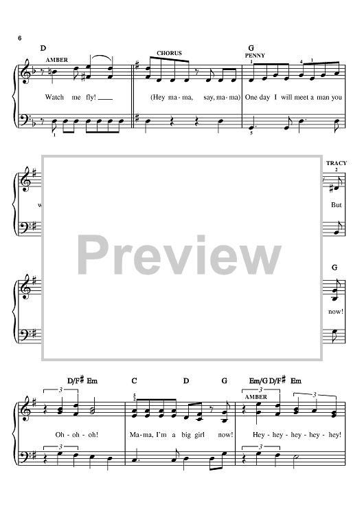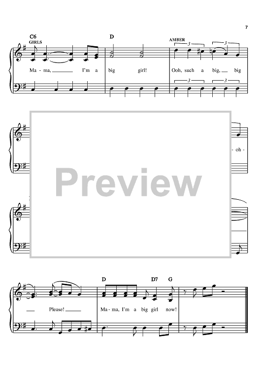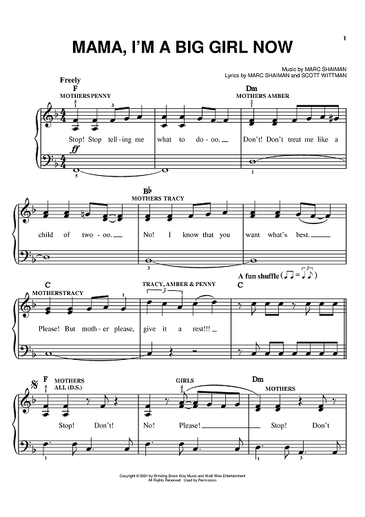 Digital Sheet Music for Mama, I'm A Big Girl Now by Marc Shaiman, Scott Wittman scored for Easy Piano; id:372650