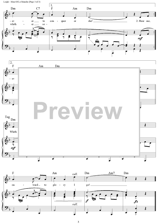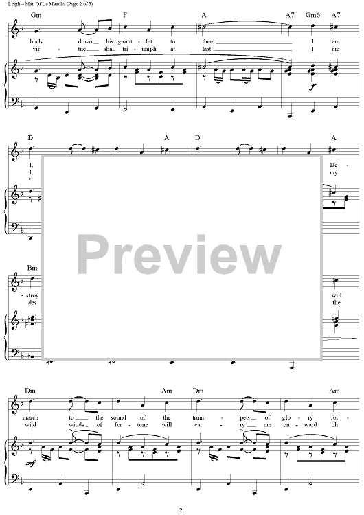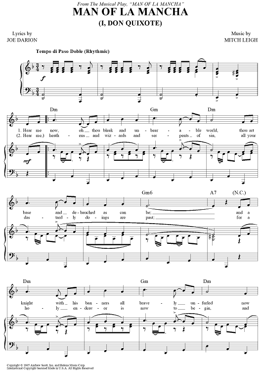 Digital Sheet Music for Man Of La Mancha (I, Don Quixote) by Mitch Leigh, Joe Darion scored for Piano/Vocal/Chords; id:437630