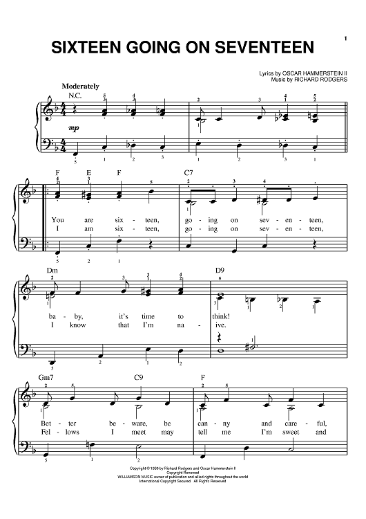 Digital Sheet Music for Sixteen Going On Seventeen by Richard Rodgers, Oscar Hammerstein II scored for Easy Piano; id:371871