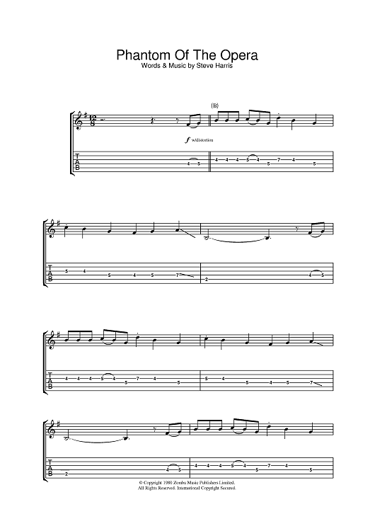 Digital Sheet Music for The Phantom Of The Opera by Steve Harris, Iron Maiden scored for Guitar Tab; id:385117