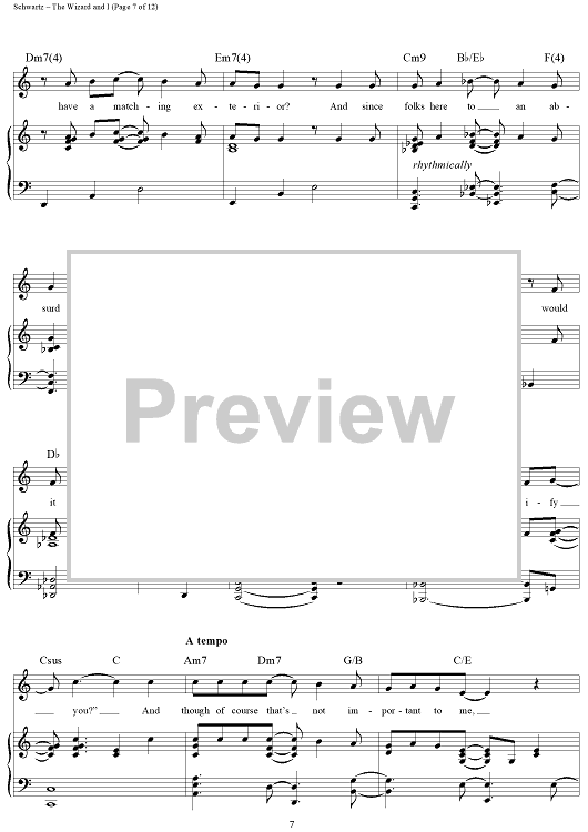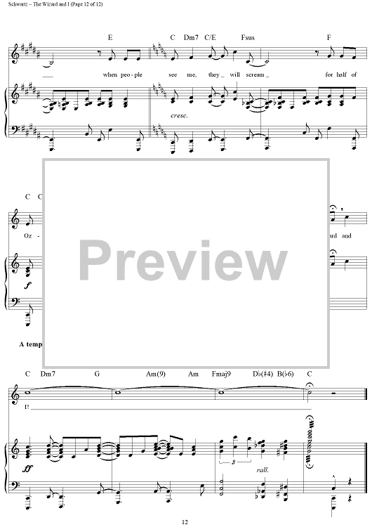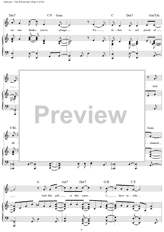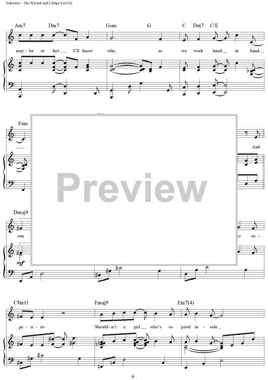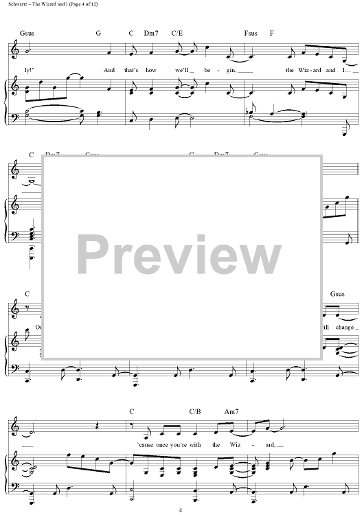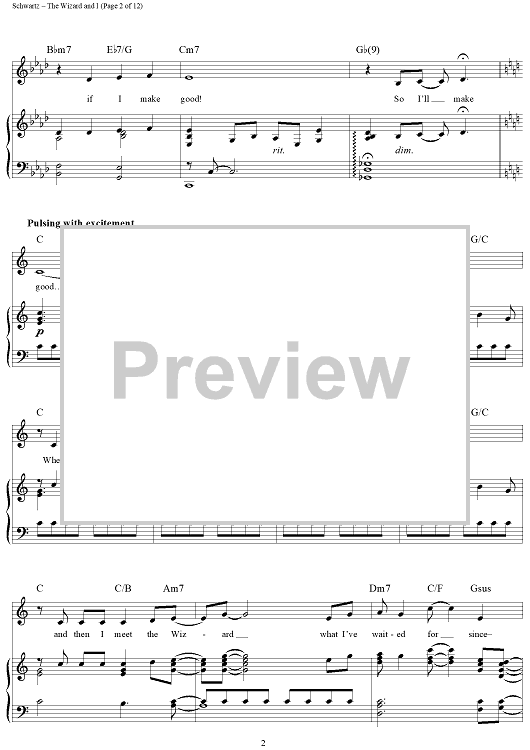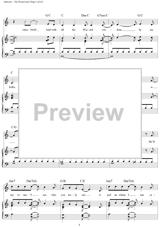 Digital Sheet Music for The Wizard And I by Stephen Schwartz scored for Piano/Vocal/Chords; id:367206