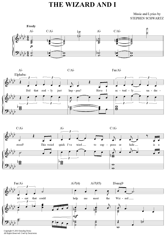 "The Wizard And I" Sheet Music by Stephen Schwartz