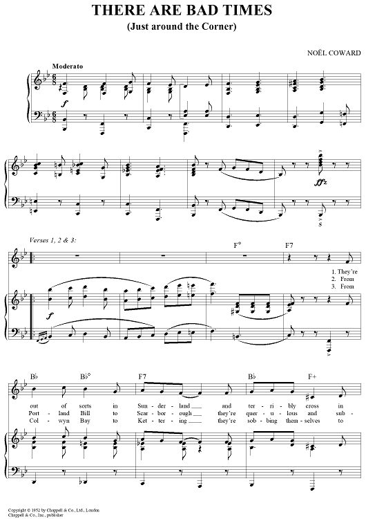 "There Are Bad Times (Just around the Corner)" Sheet Music by Noel Coward