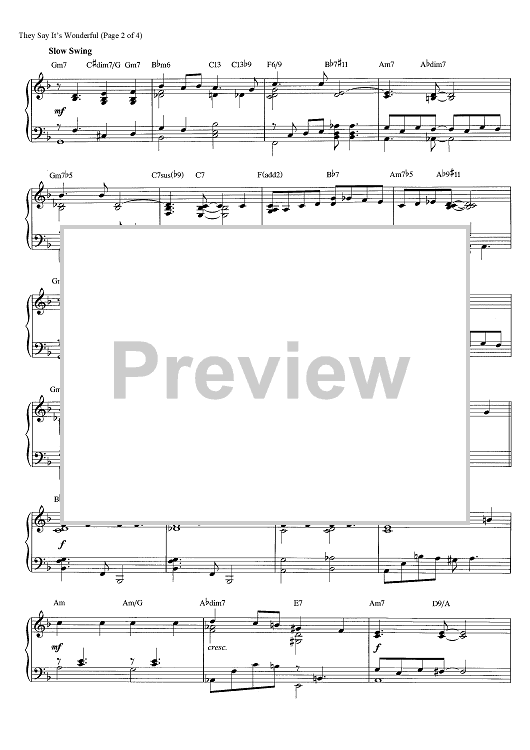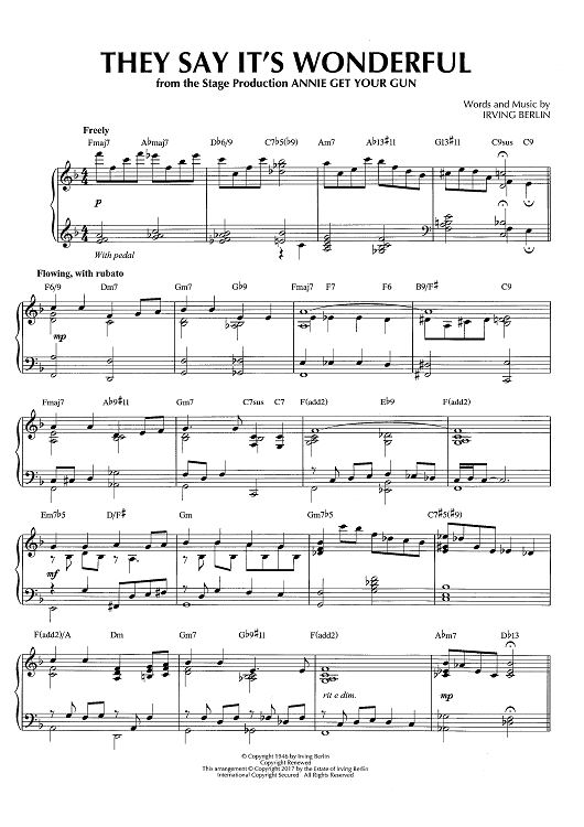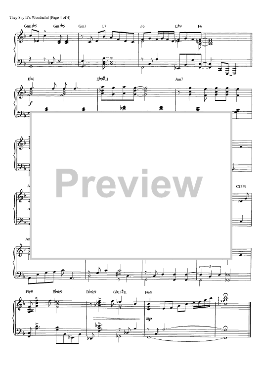 Digital Sheet Music for They Say It's Wonderful by George Gershwin, Brent Edstrom scored for Piano Solo; id:466018