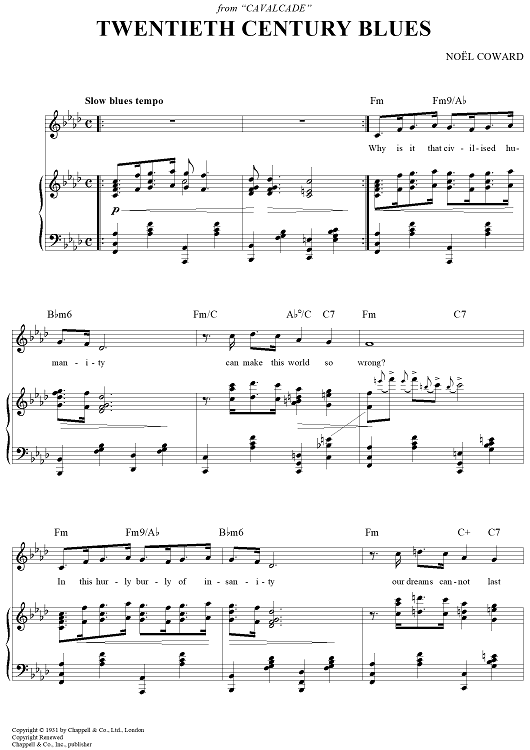Digital Sheet Music for Twentieth Century Blues by Noel Coward scored for Piano/Vocal/Chords; id:357039