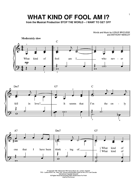 "What Kind Of Fool Am I?" Sheet Music by Leslie Bricusse