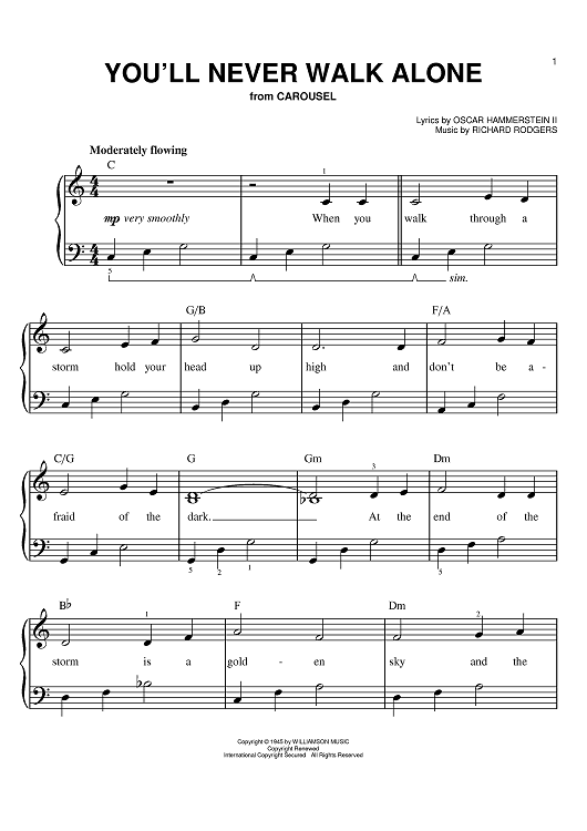 Digital Sheet Music for You'll Never Walk Alone by Richard Rodgers, Oscar Hammerstein II, Barbra Streisand scored for Easy Piano; id:398109