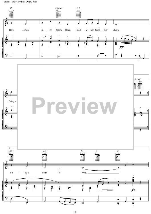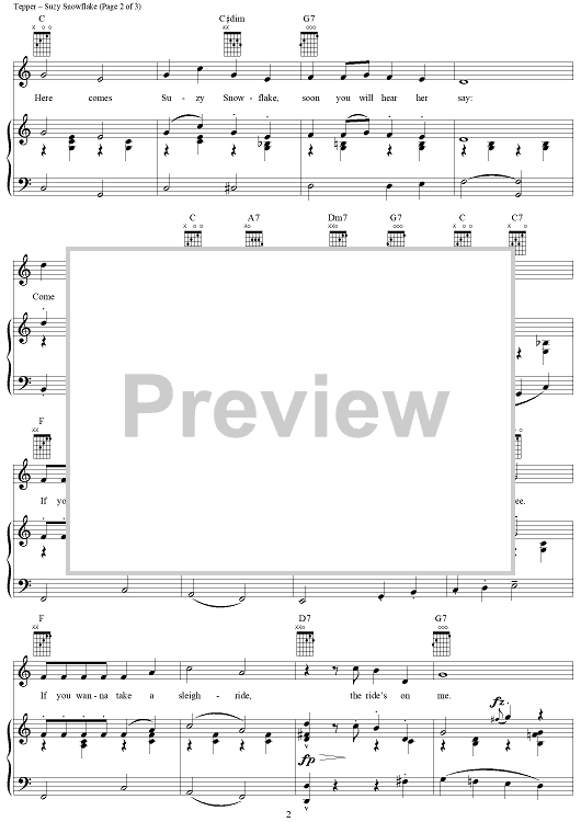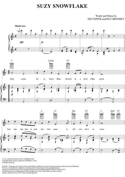 Digital Sheet Music for Suzy Snowflake by Sid Tepper, Roy Brodsky scored for Piano/Vocal/Chords; id:283969