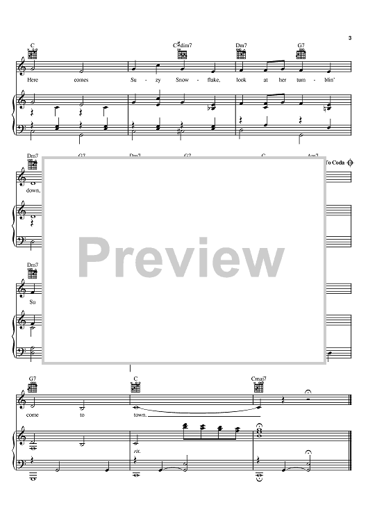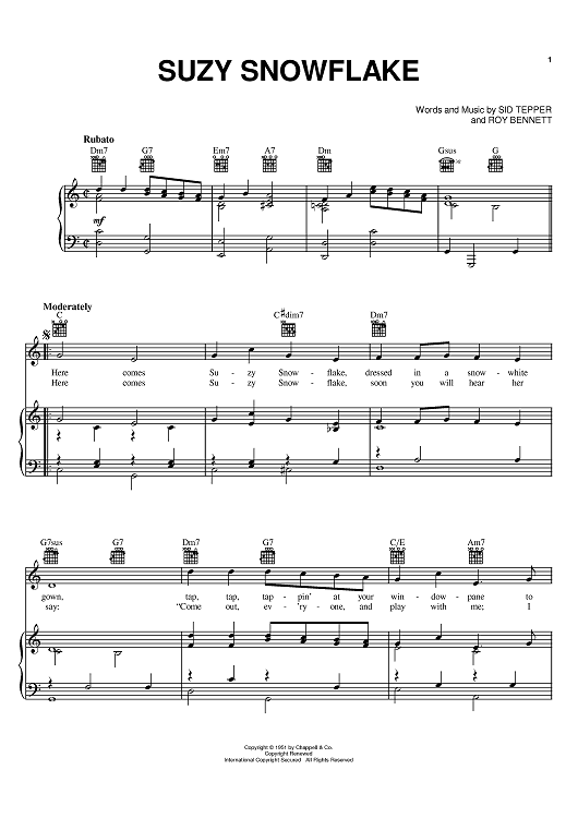 Digital Sheet Music for Suzy Snowflake by Sid Tepper, Roy C. Bennett scored for Piano/Vocal/Chords; id:371951