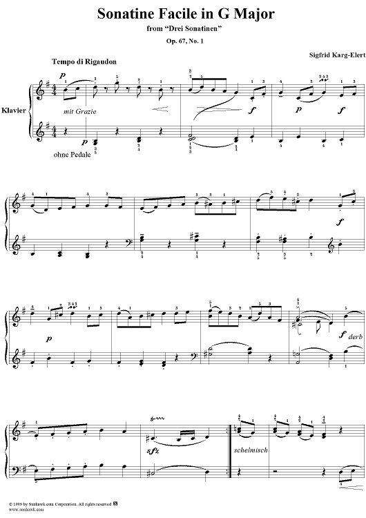 Digital Sheet Music for Drei Sonatinen, Op.67 No.1, 1. Sonatine facile, G Major by Sigfrid Karg-Elert scored for Piano Solo; id:250141