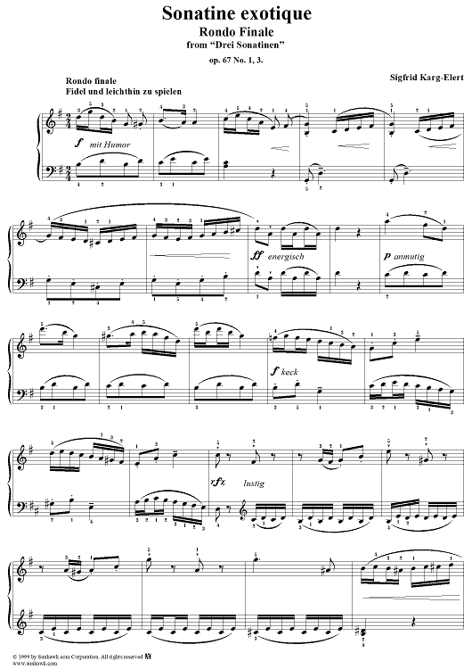 "Drei Sonatinen, Op.67 No.1, 3. Sonatine exotique, E minor, Rondo Finale" Sheet Music by Sigfrid Karg-Elert