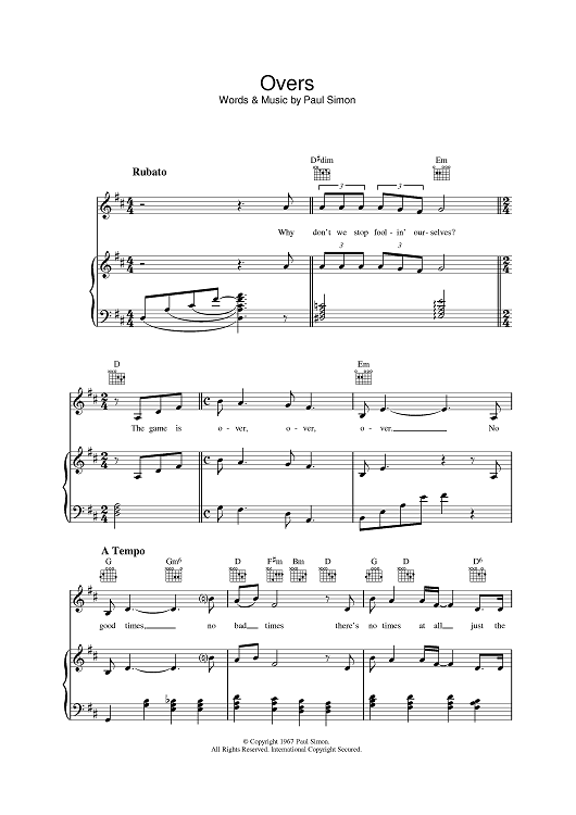Digital Sheet Music for Overs by Paul Simon, Simon & Garfunkel scored for Piano/Vocal/Chords; id:390944
