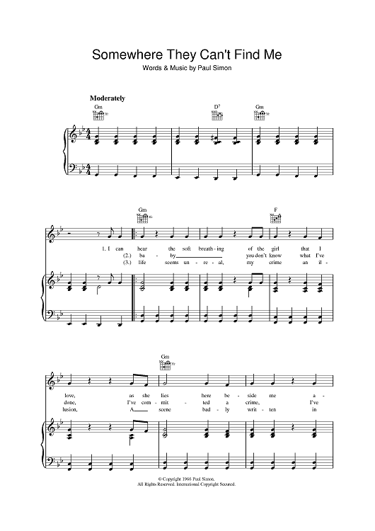 Digital Sheet Music for Somewhere They Can't Find Me by Paul Simon, Simon & Garfunkel scored for Piano/Vocal/Chords; id:391040
