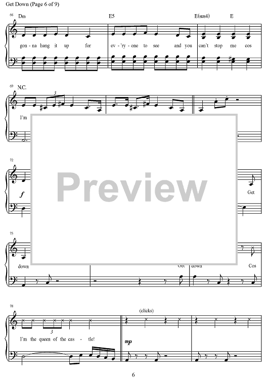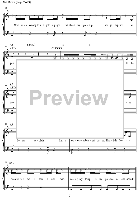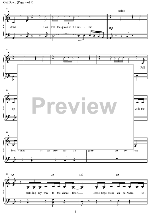 Digital Sheet Music for Get Down - from the Broadway Musical Production SIX by Toby Marlow, Lucy Moss, Tom Curran, Joe Beighton scored for Piano/Vocal/Chords; id:497150