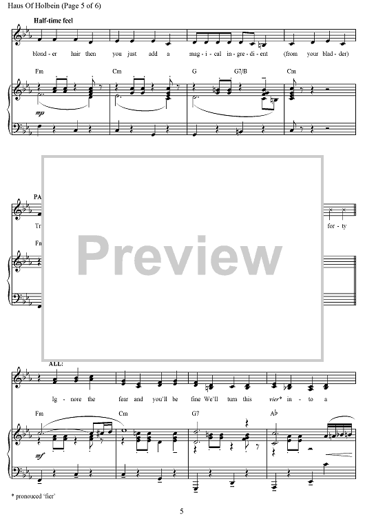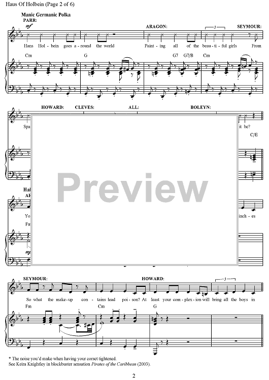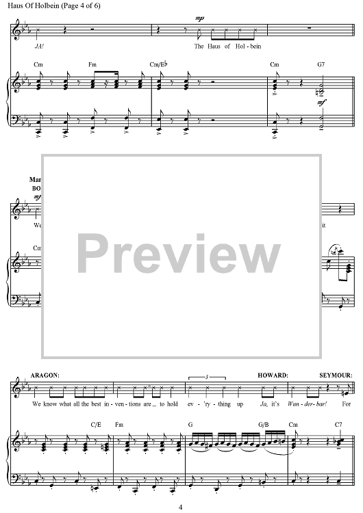 Digital Sheet Music for Haus of Holbein - from the Broadway Musical Production SIX by Toby Marlow, Lucy Moss, Tom Curran, Joe Beighton scored for Piano/Vocal/Chords; id:497151